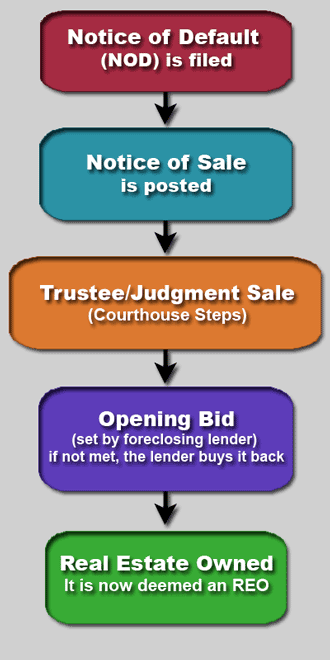 A foreclosure occurs when a property owner cannot make principal and/or interest payments on his/her loan, typically leading to the property being seized and sold.